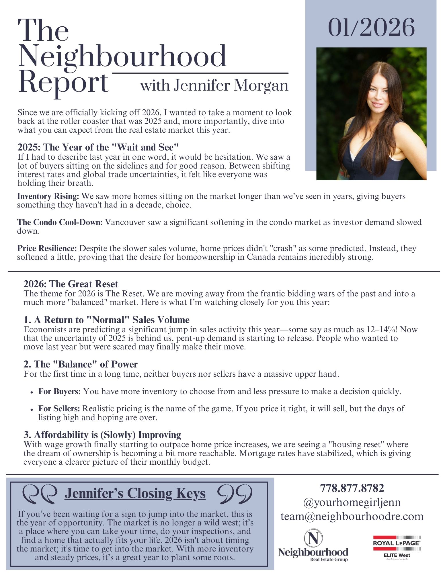 If you’ve been waiting for a sign to jump into the market, this is the year of opportunity. The market is no longer a wild west; it’s a place where you can take your time, do your inspections, and find a home that actually fits your life. 2026 isn't about timing the market; it's time to get into the market. With more inventory and steady prices, it’s a great year to plant some roots.
